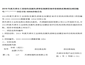 2019年度天津市工業(yè)綠色發(fā)展先進(jìn)單位創(chuàng)建咨詢評價(jià)機(jī)構(gòu)